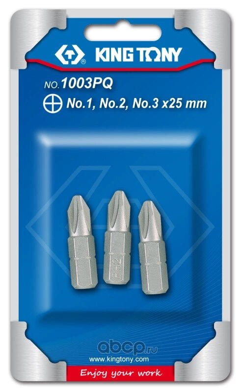 Набор вставок (бит) 1/4", крестовые, №1, №2, №3, 3шт KING TONY 1003PQ