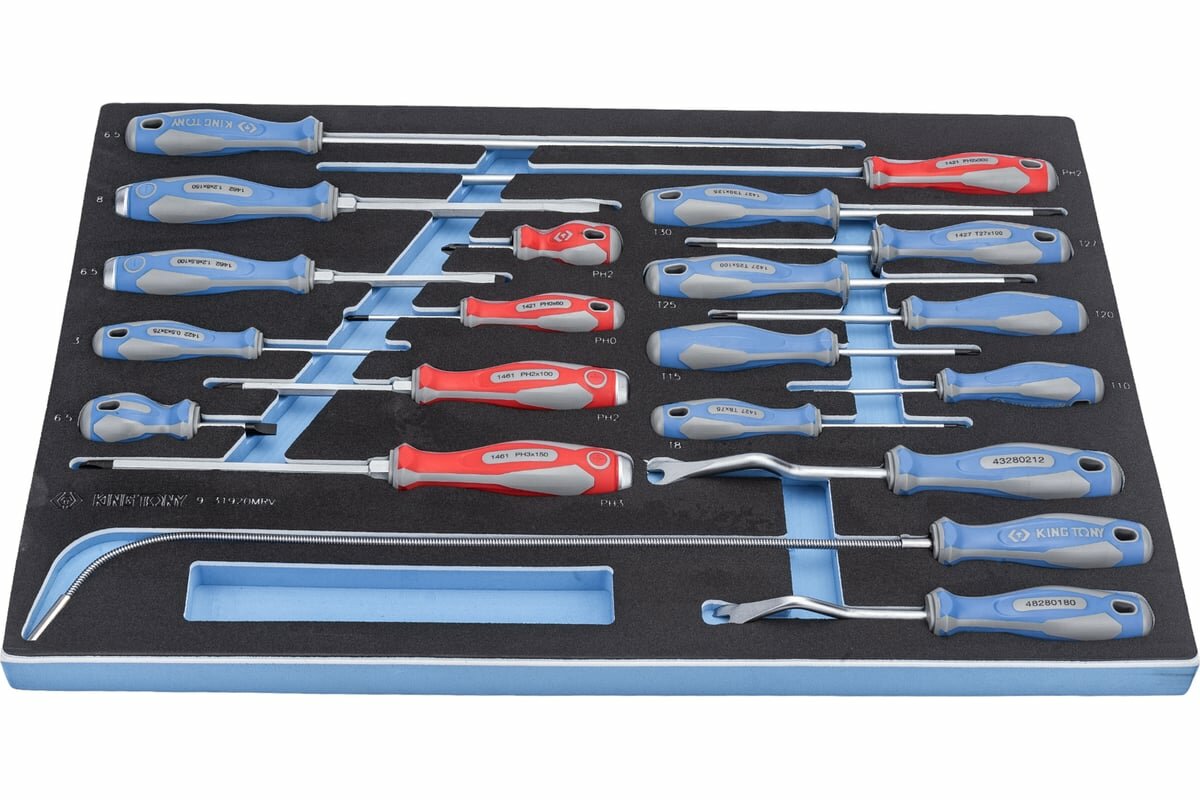 Набор отверток, съемник клипс и гибкий магнит KING TONY ложемент, 20 предметов 9-31920MRV