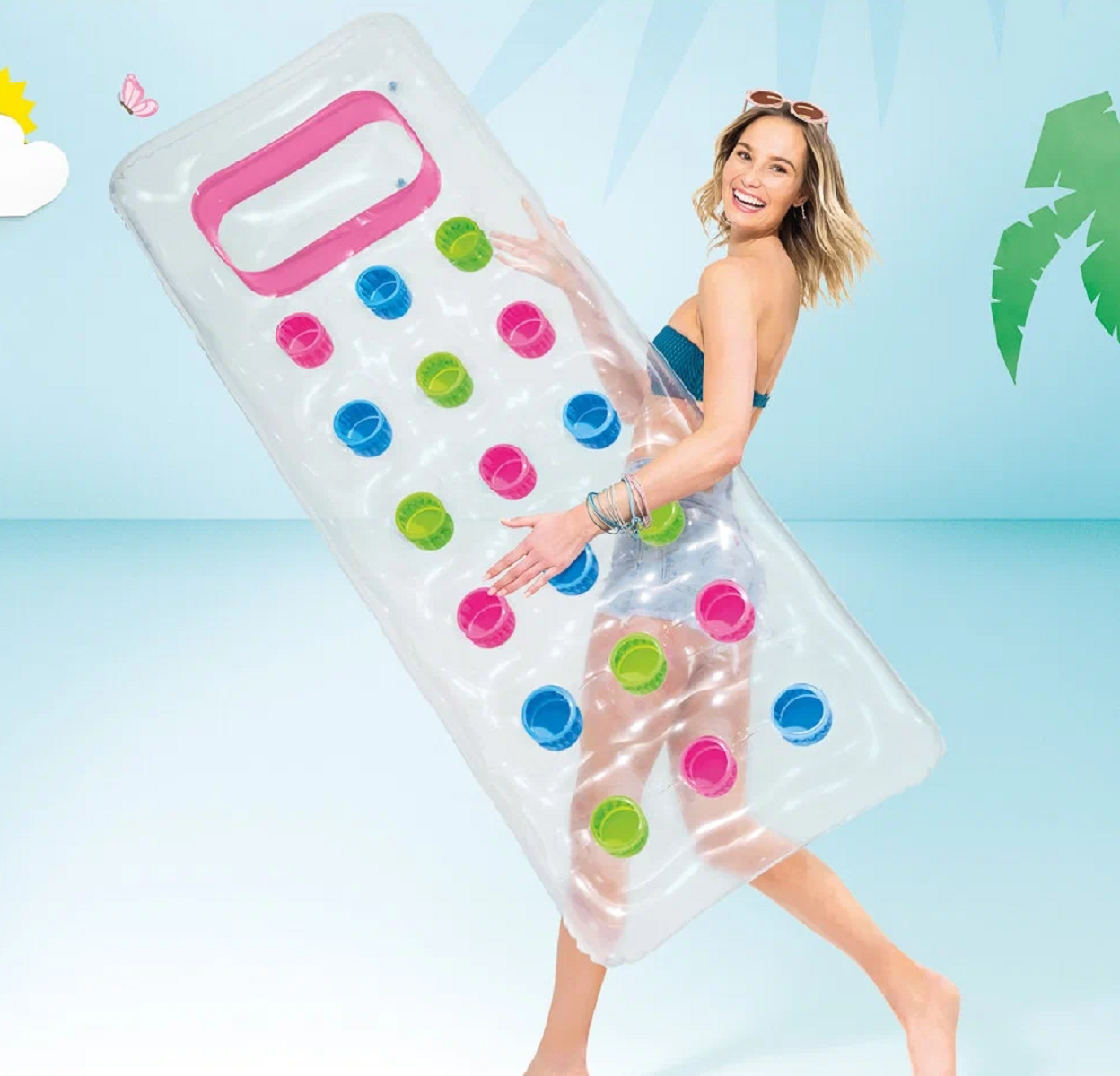 Матрас с подстаканниками Бар розовый прозрачный (188х71) Intex 59894