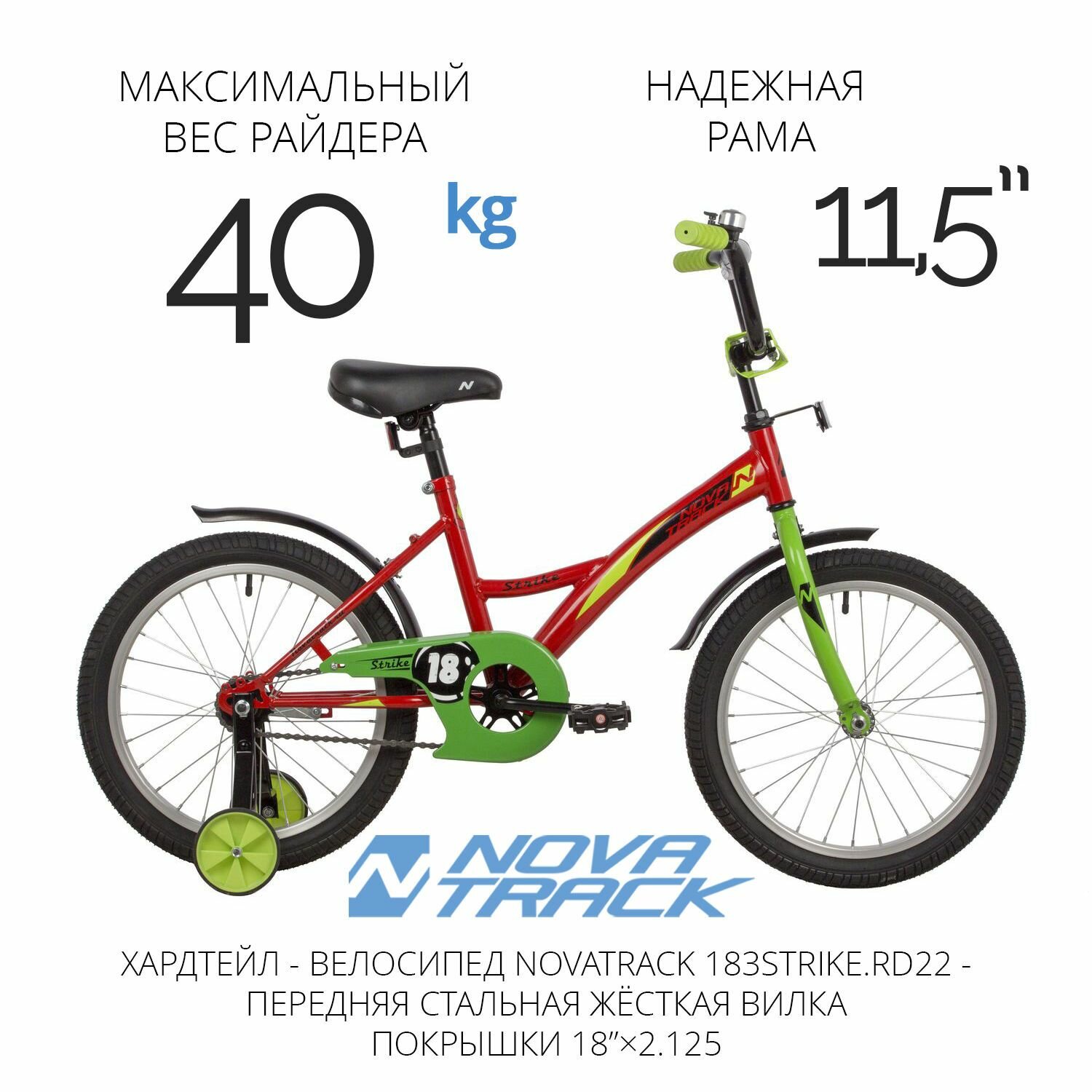 Купить Велосипед детский NOVATRACK 18"183STRIKE.RD22 красный, тормоз нож, крылья корот, защита А-тип