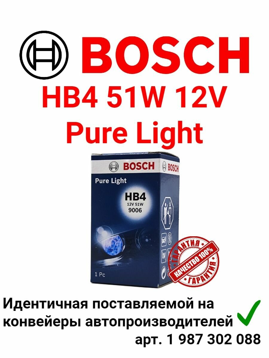 Лампа Pure Light Standart Hb4 12v [51w] [Картон] [1 Шт] Bosch арт. 1987302153
