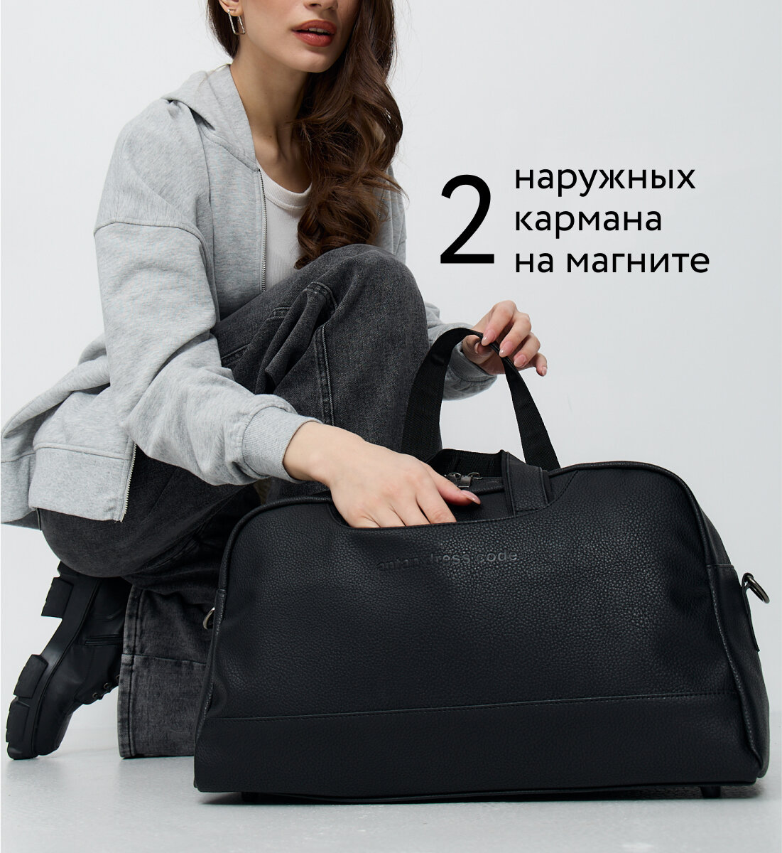 Сумка дорожная мужская женская спортивная для фитнеса для ручной клади большая ANTAN 2-259 В Искусственная кожа/черный