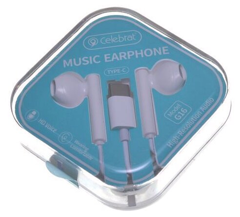 Проводная стереогарнитура Celebrat G16 (Type-C) (белая)