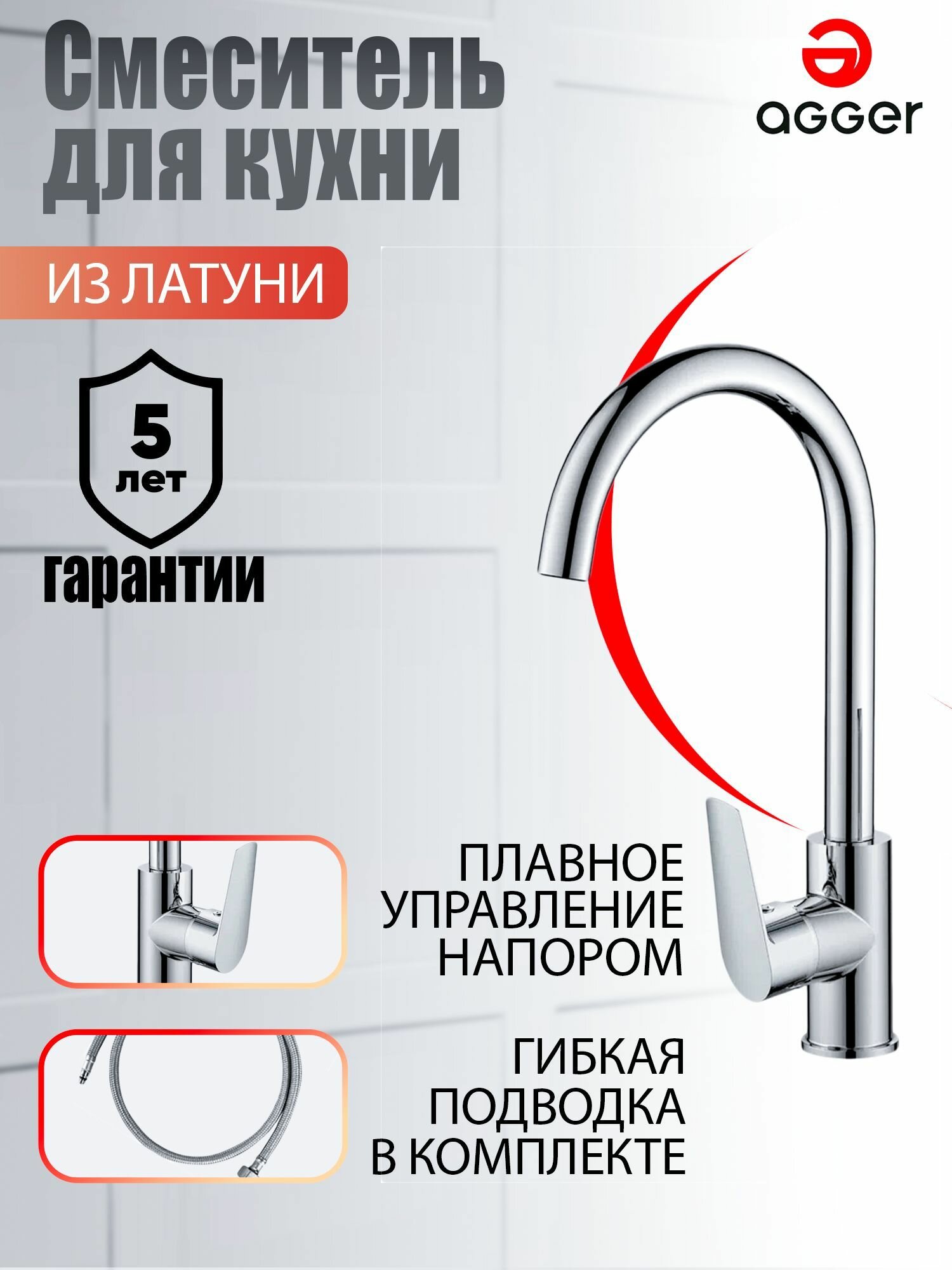 Смеситель для кухни на мойку однорычажный Agger 09GR00100 цвет хром