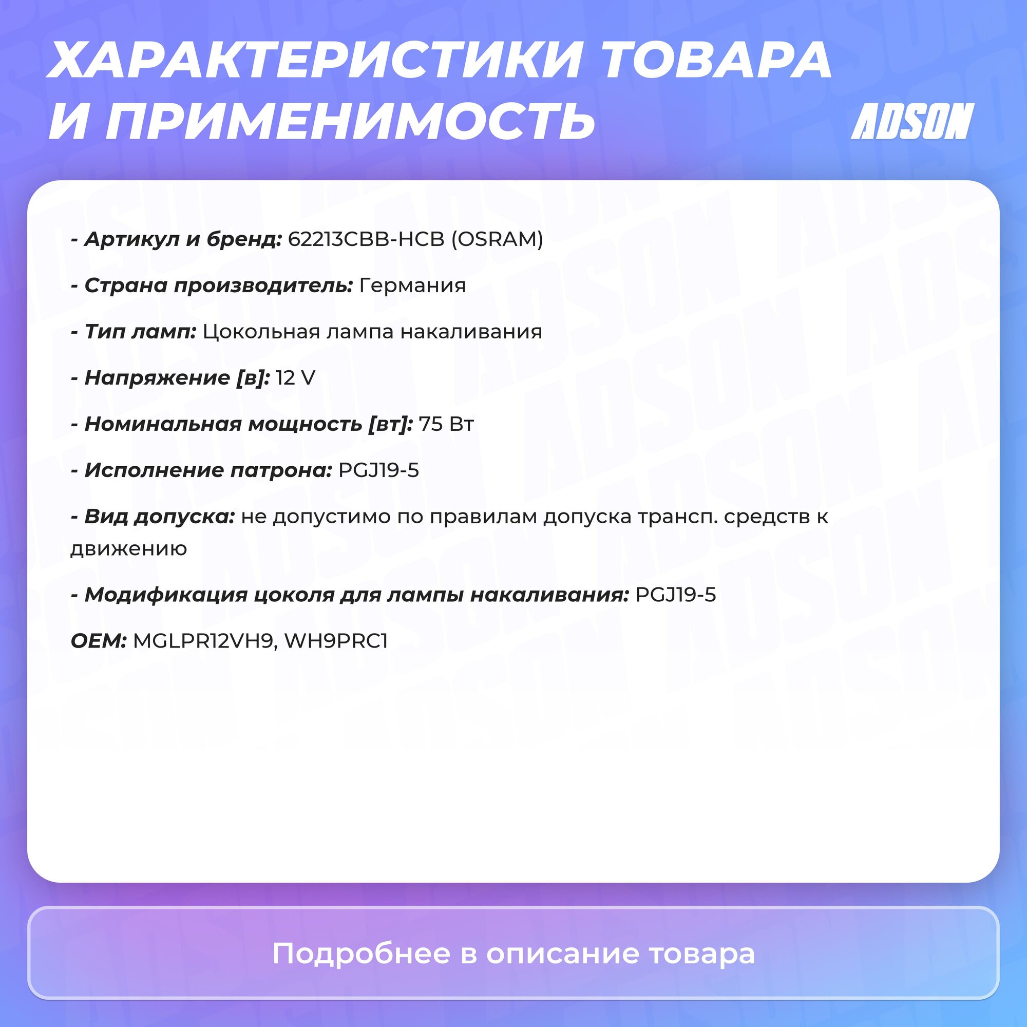 ЛампаCOOL BLUE BOOST 75W 12V PGJ19-5 5000К OSRAM 62213CBBHCB