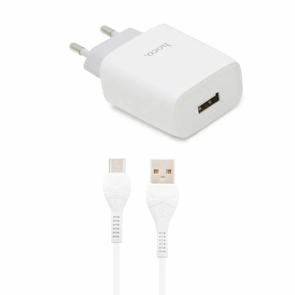 Сетевое зарядное устройство (СЗУ) Hoco C72A (USB) + кабель MicroUSB, 2.1 А, белый