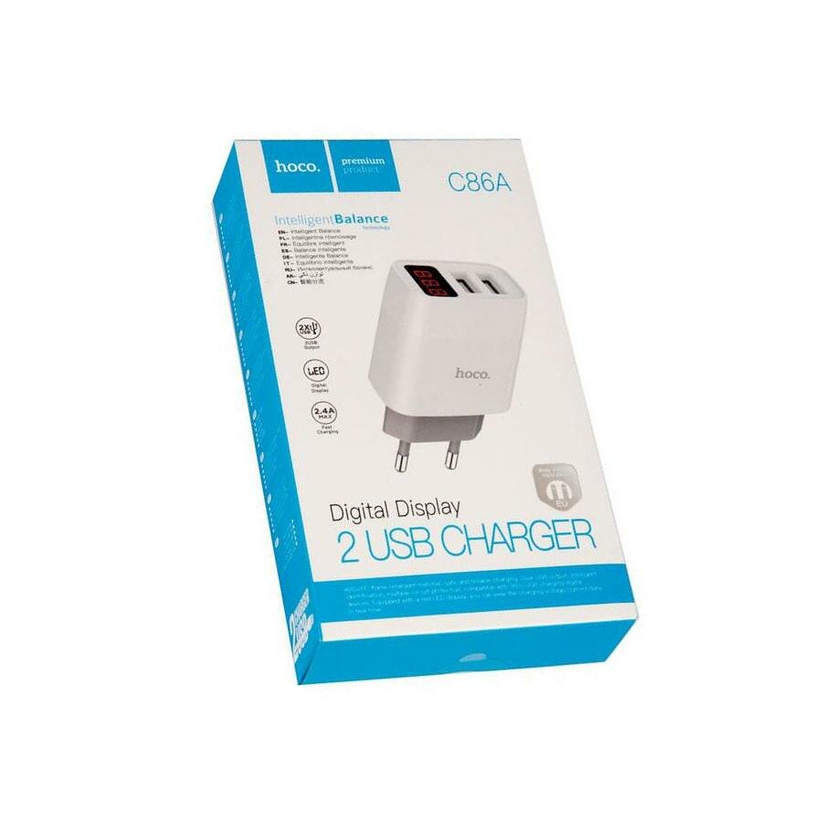 Сетевое зарядное устройство Hoco C86A Illustrious с дисплеем, dual USB, 2.4A, черный