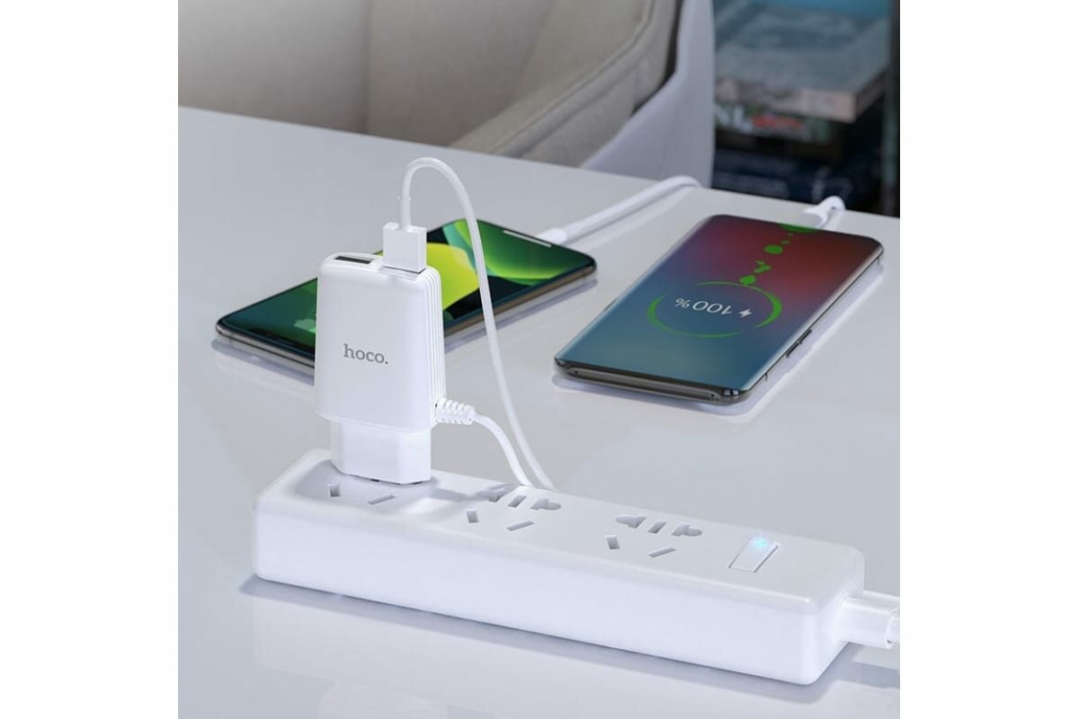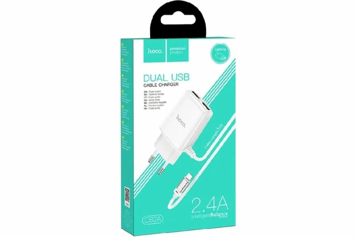 Сетевое зарядное устройство Hoco C82A Real Power Dual Port Cable Charger (for Lightning) (EU), белый