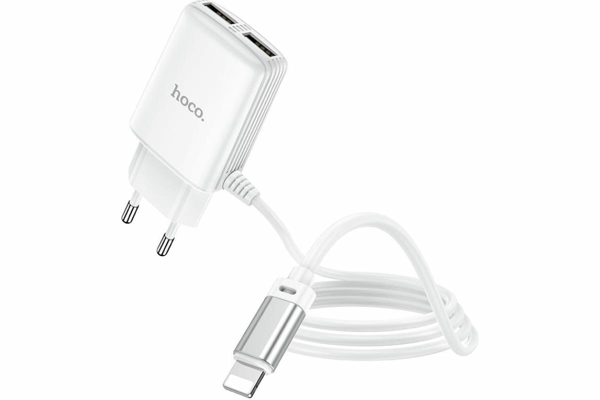 Сетевое зарядное устройство Hoco C82A Real Power (2.4A, 2*USB, с кабелем Lightning) Белое 3044