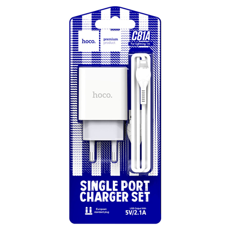 HOCO Аксессуар HC-27947 C81A Сетевое ЗУ + Кабель Lightning 1m 1 USB Выход: 10.5W White