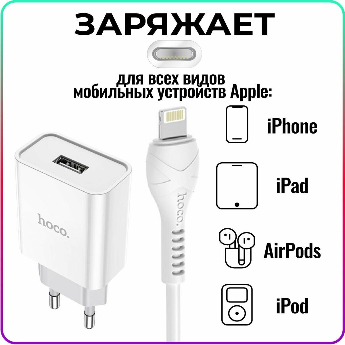 СЗУ HOCO C81A Asombroso 1xUSB, 2.1А + USB кабель Lightning 8-pin, 1м (белый)