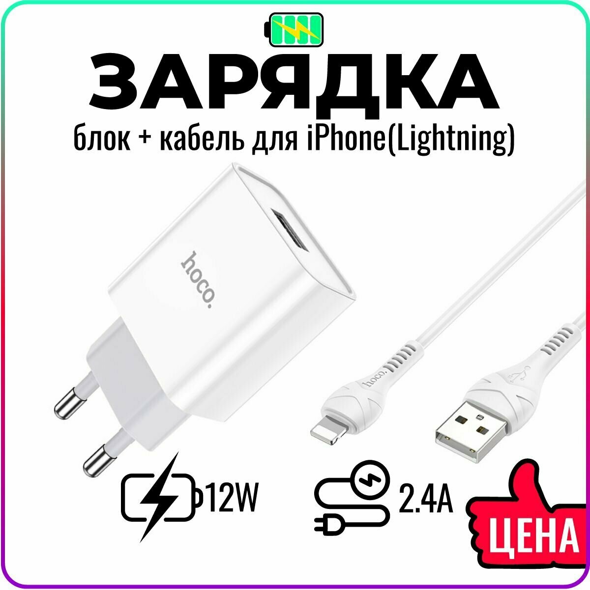 Сетевое зарядное устройство (СЗУ) Hoco C81A (USB) + кабель Lightning, 2.1 А, белый