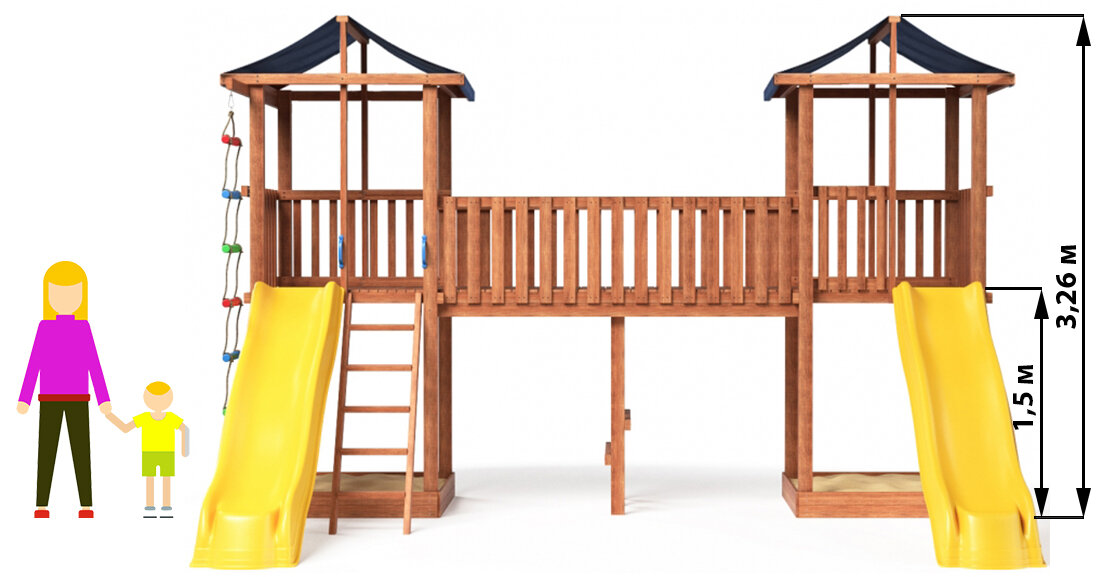 СохранитьДетская площадка для улицы и дачи окрашенная. Детский игровой комплекс спортивный уличный для дачи во двор с двумя горками и песочницами СГ6-тент интересное: