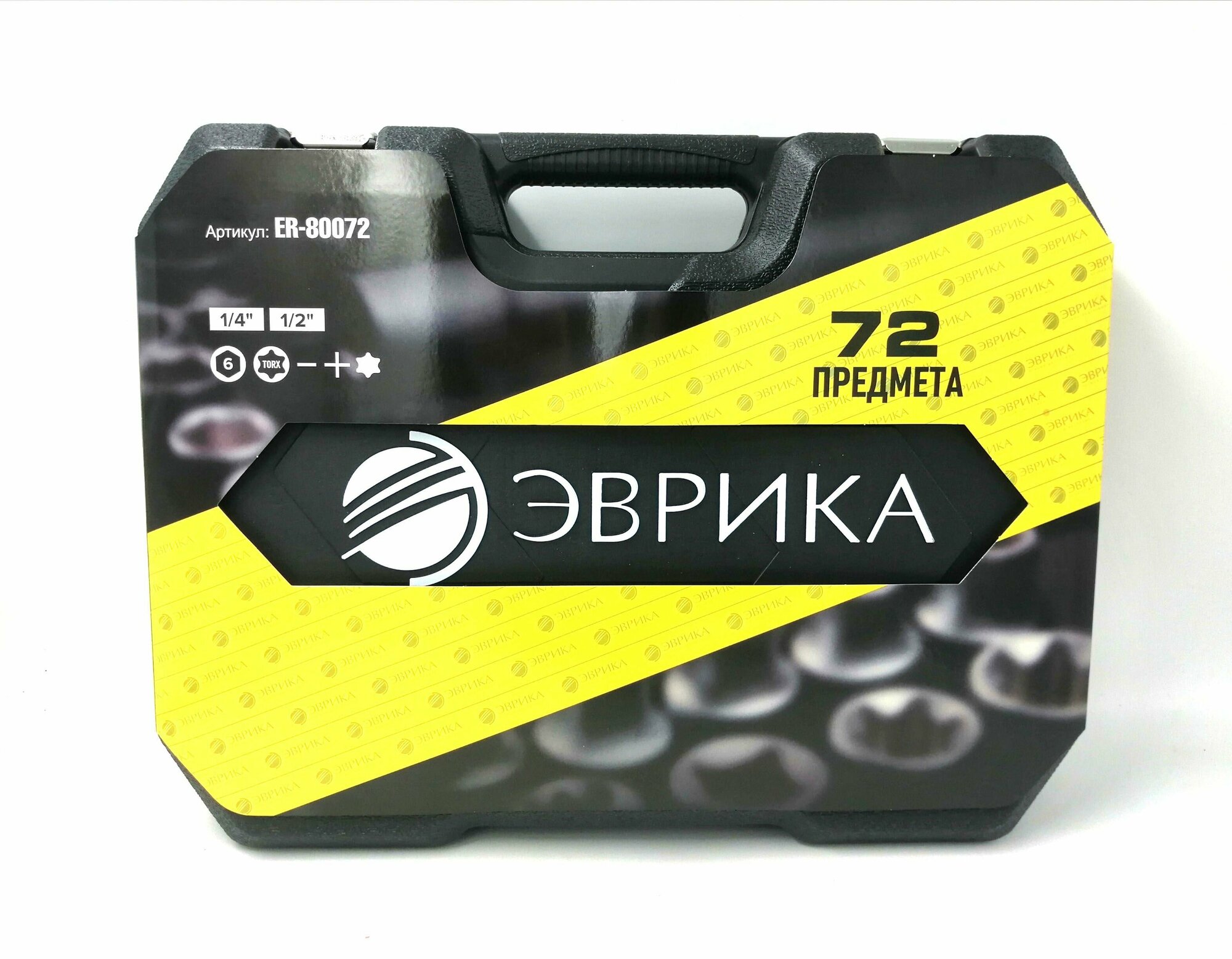 Набор инструмента ER-80072 1/4"&1/2"DR 6-гранный 72 предмета эврика