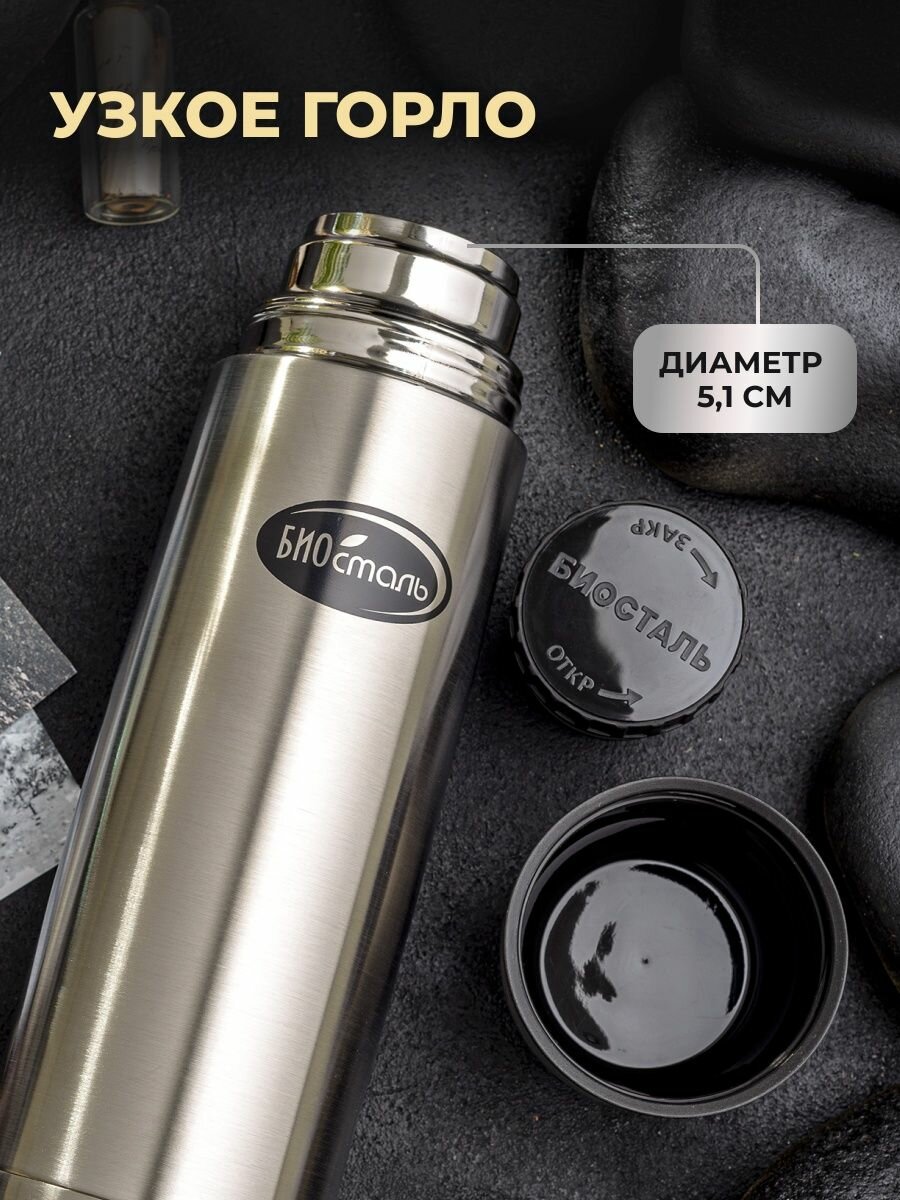 Термос классический Вакуумный с узкой горловиной, 2 пробки Биосталь/Biostal (0.75),NB-750-2