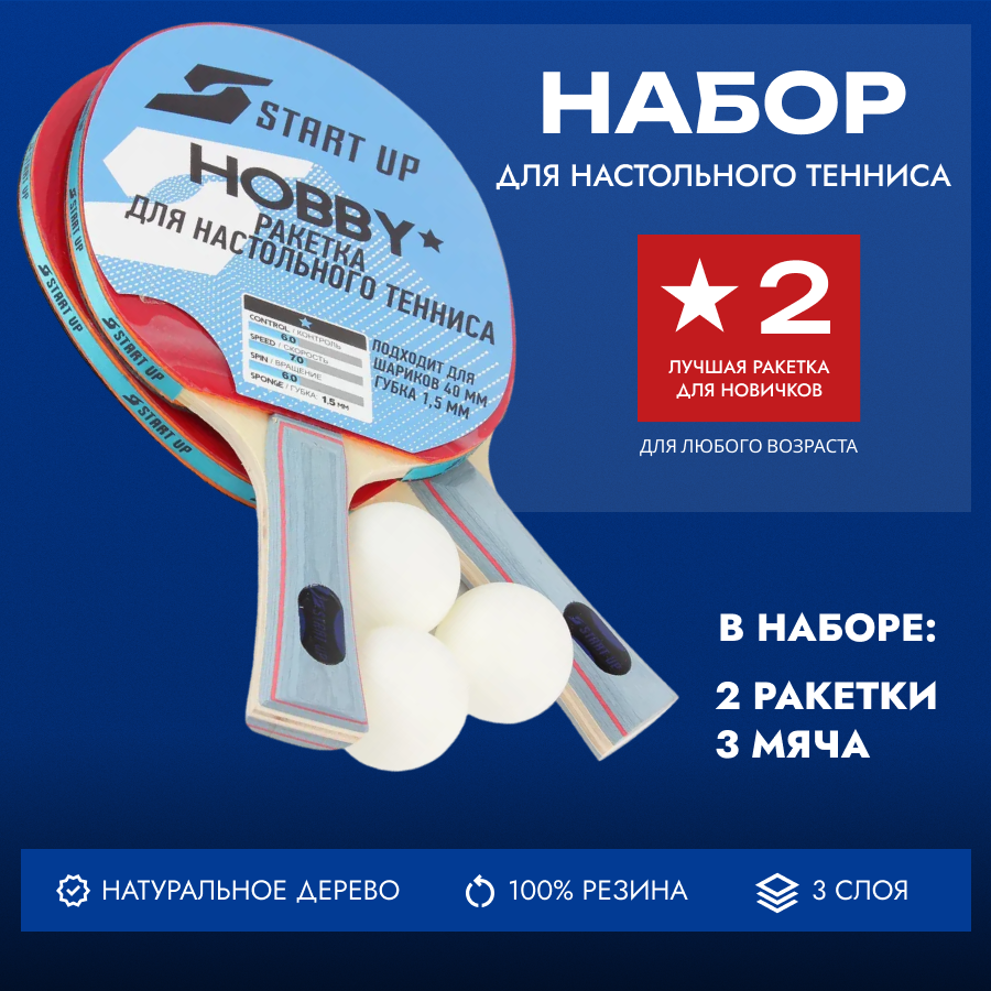 Ракетки и мячи набор для настольного тенниса Start Up 1 Star интересное: