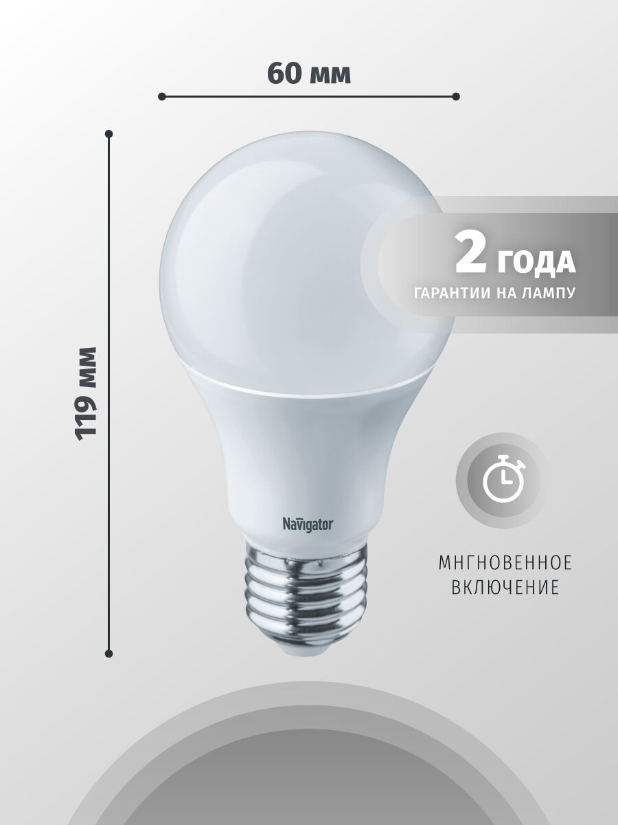 Лампа светодиодная Navigator 61475, E27, A60, 10 Вт, 4000 К