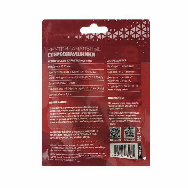 | Разъем штекера | mini jack 3.5 mm |