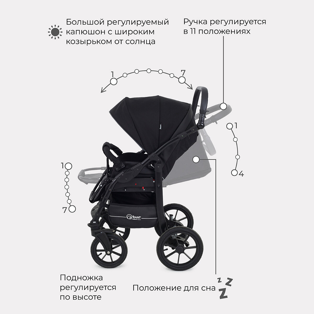 Коляска детская универсальная Rant Patio 3 в 1, 08 Black интересное: