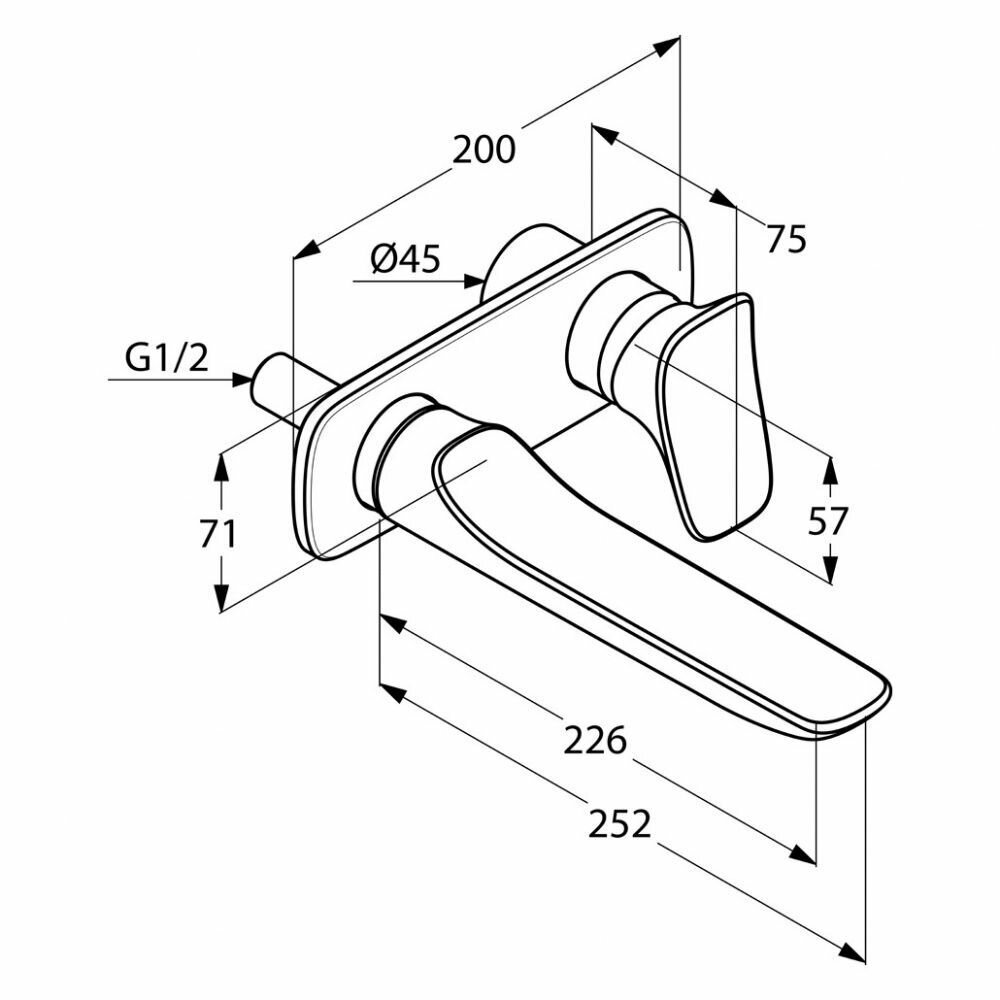 Внешняя часть встраиваемого смесителя для раковины Kludi Ambienta, арт. 532450575, длина излива 226 см