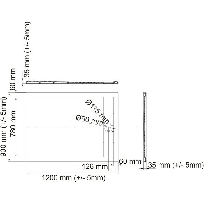 Душевой поддон WasserKRAFT Wiese 90х120 84T07 матовый