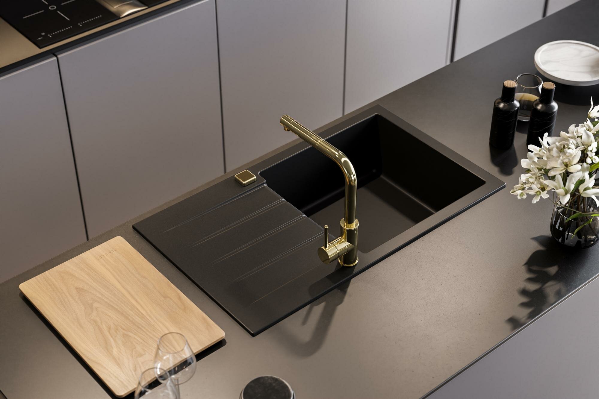 Мойка ALVEUS GRANITAL CADIT 40 CARBON - G91 860 X 500 1X в комплекте с сифоном 1132823, Alveus черный