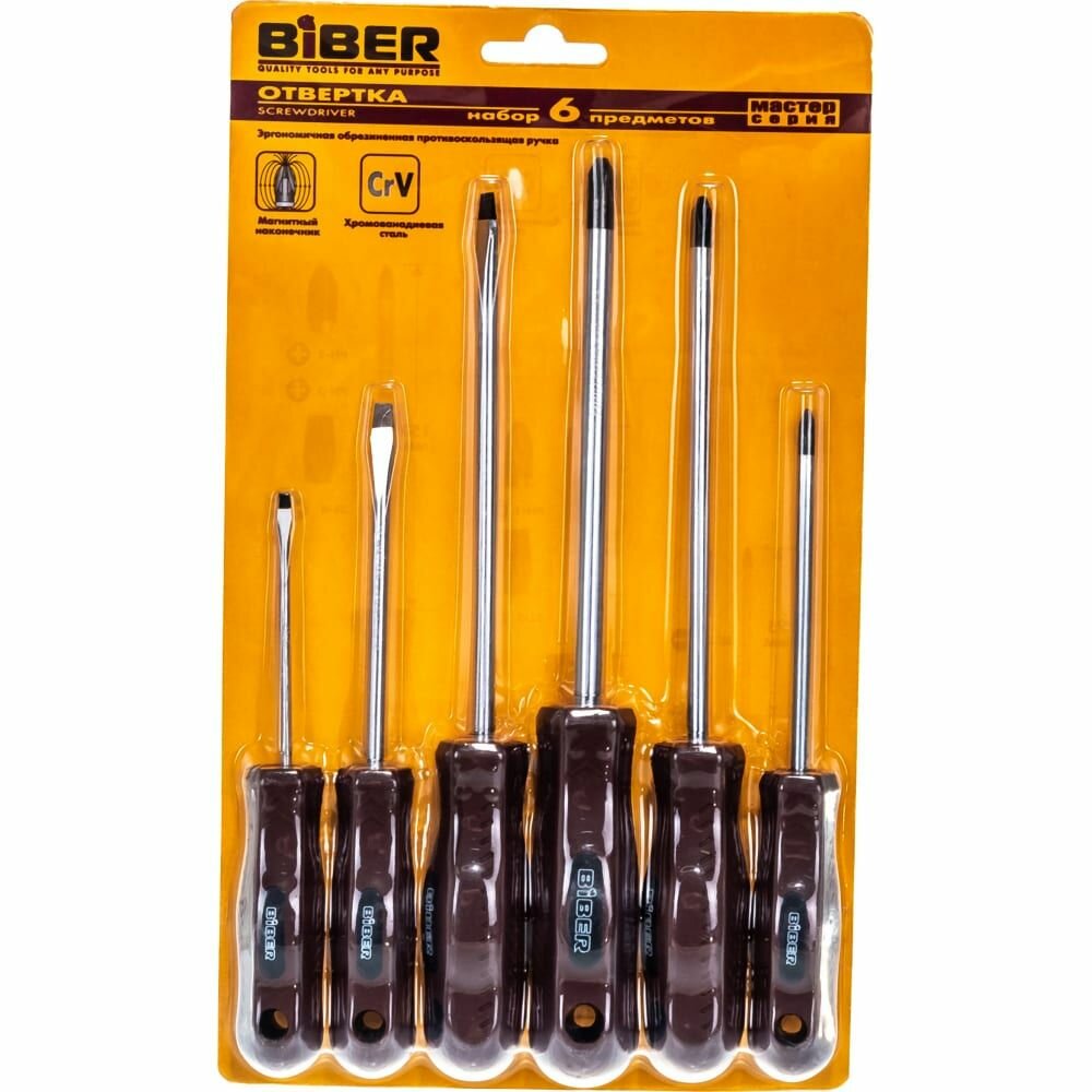 Бибер 85562 Набор отверток (6шт) в блистере / BIBER 85562 Набор отверток (уп. 6шт) в блистере