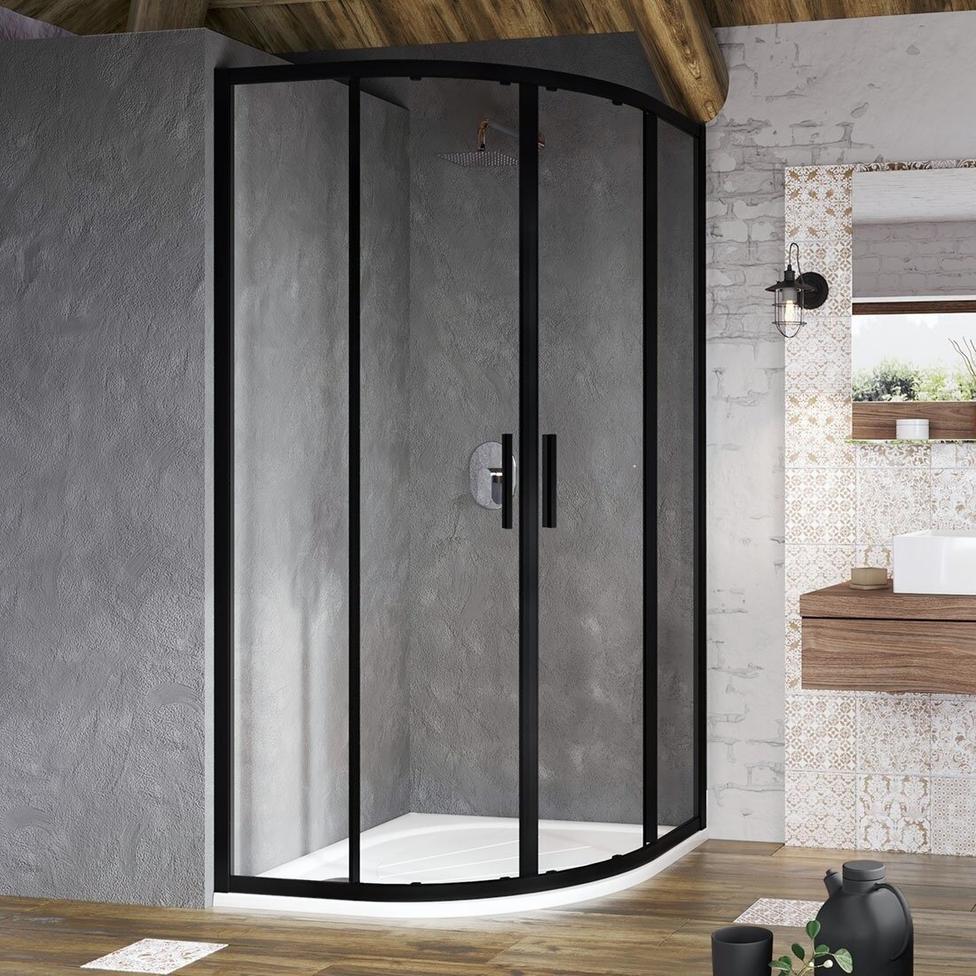 Душевой уголок Vincea city vsr-5ct9011clb, 1100 900, черный, стекло прозрачное vsr-5ct9011clb