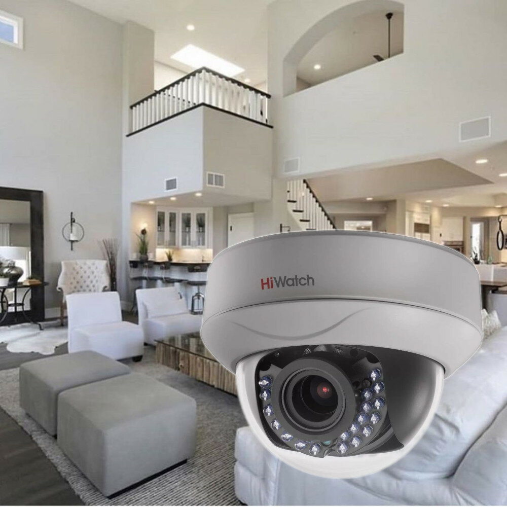 Видеокамера HD-TVI 2Мп внутреннняя купольная с ИК-подсветкой до 30м (DS-T207P (2.8-12 mm) | код 300611601 | HiWatch ( 1шт. )