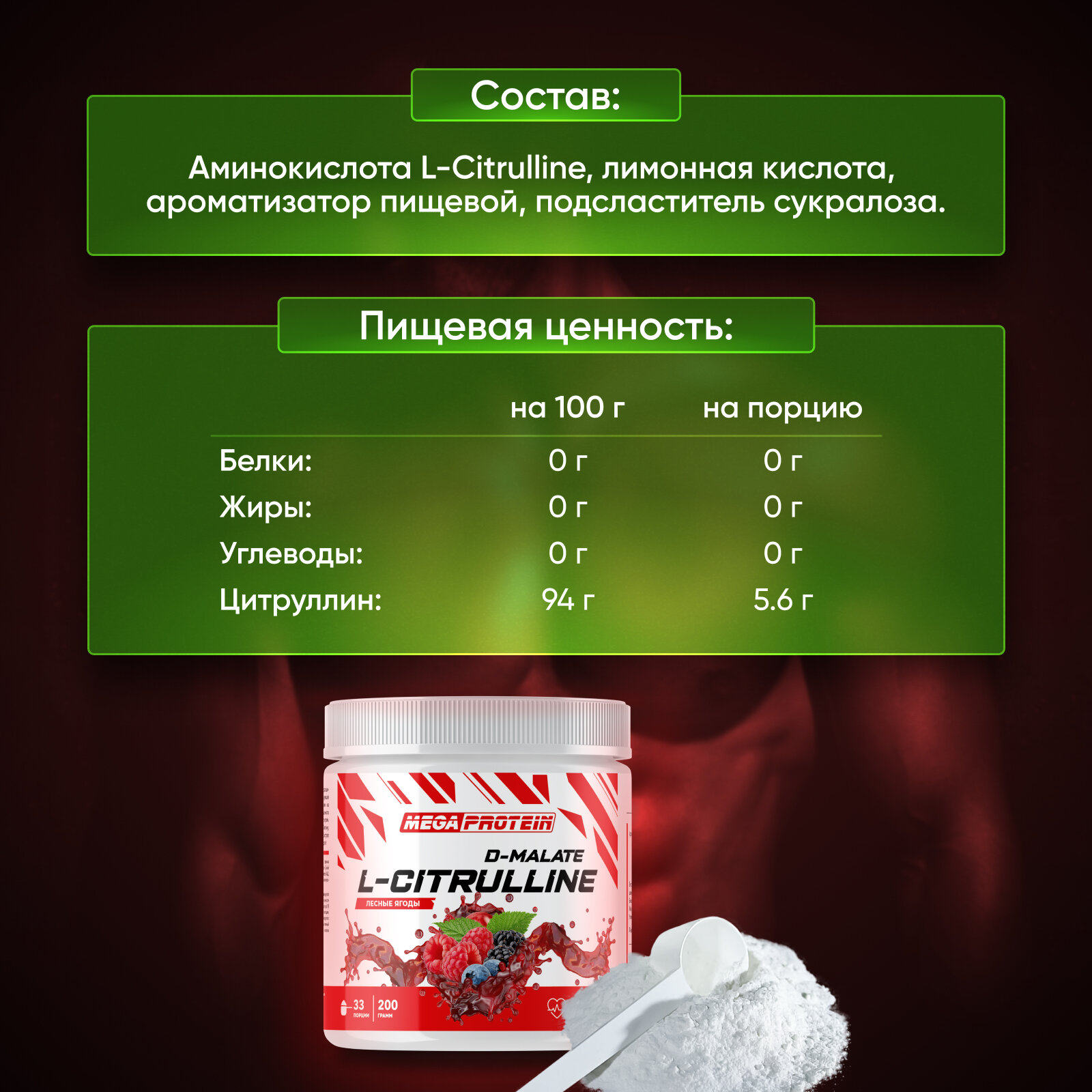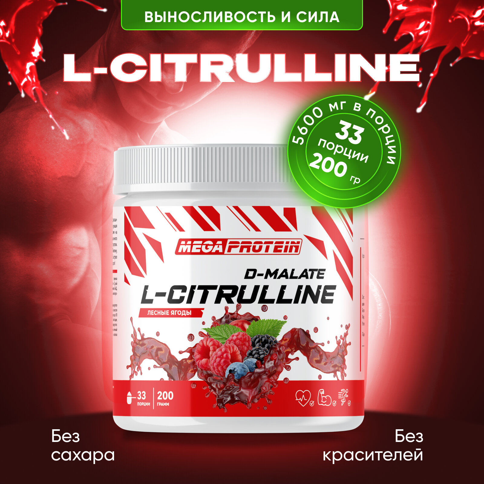 Аминокислоты для энергии и выносливости L-Citrulline Malate / Цитруллин малат Megaprotein , Лесные ягоды, 200г/33 порции