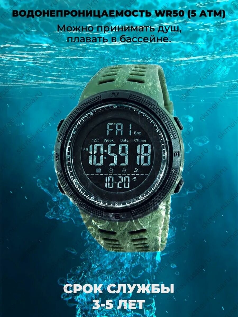 Часы мужские SKMEI 1251, водонепроницаемые, цвет зеленый милитари. Часы электронные.