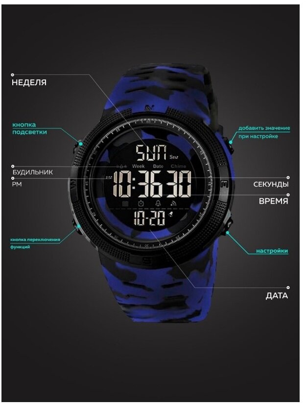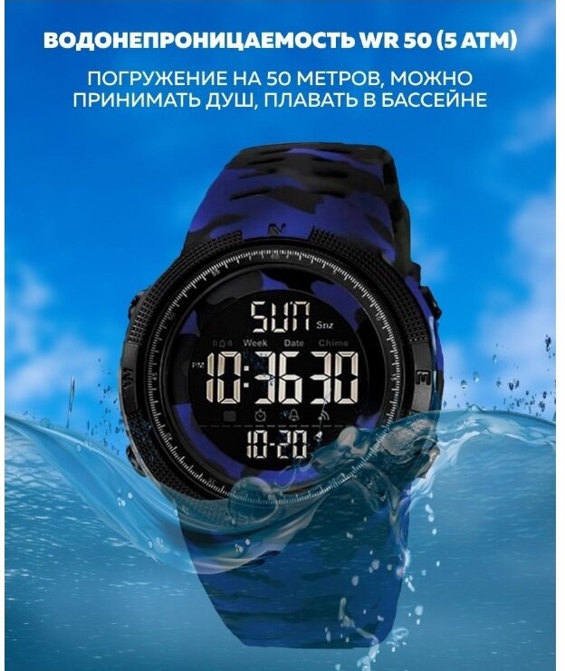 Часы SKMEI 1251 Синий камуфляж Часы спортивные мужские с секундомером, будильником, таймером, водонепроницаемые