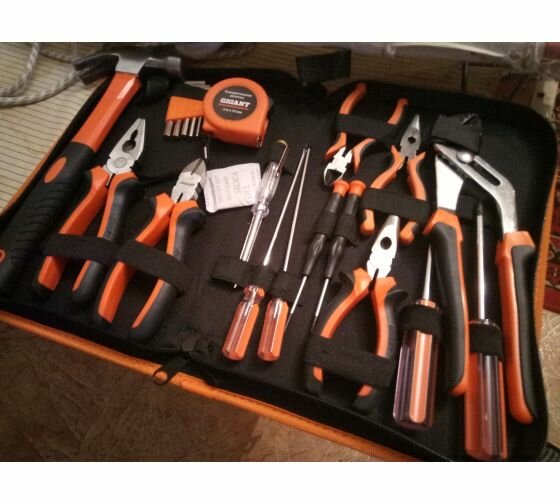 | Инструменты в комплекте | молоток / отвёртки / пассатижи / круглогубцы / кусачки / отвёртки для точных работ / ключ переставной гаечный / ключи имбусовые (шестигранные) |