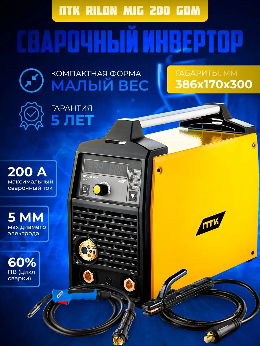 Сварочный аппарат инверторного типа ПТК Rilon MIG 200 GDM, TIG, MMA, MIG/MAG (005.300.279)