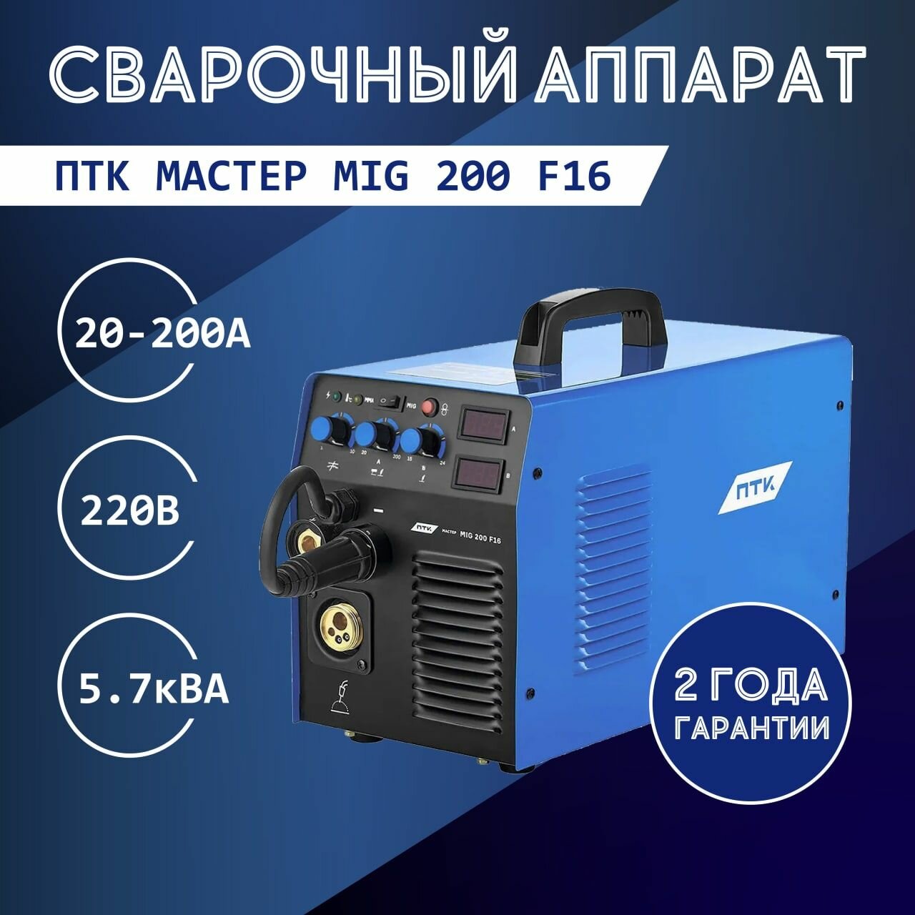 Сварочный аппарат инверторного типа ПТК мастер MIG 200 F16 2020, MMA, MIG/MAG