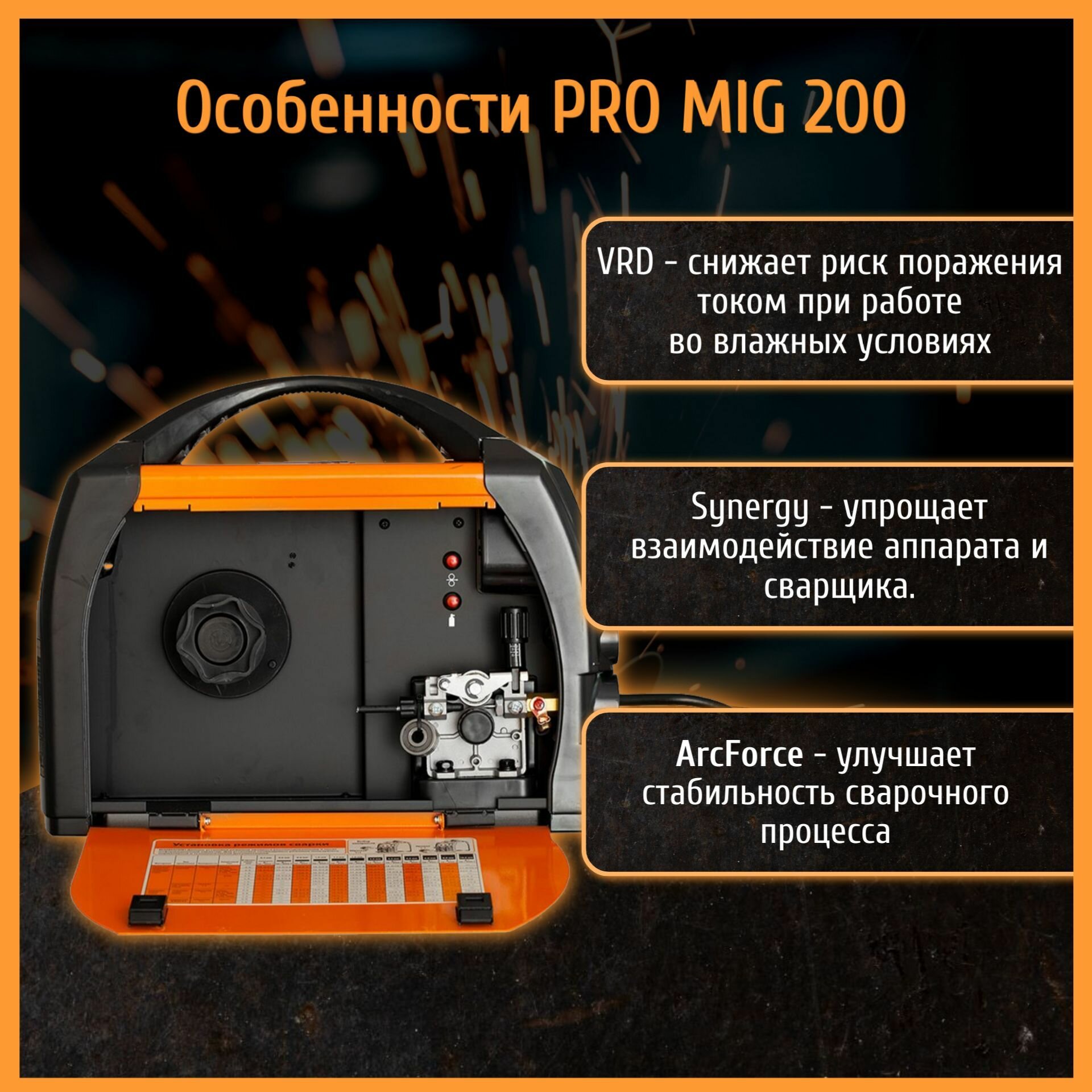 | Дополнительные функции | функция VRD / антиприлипание / горячий старт / форсаж дуги |