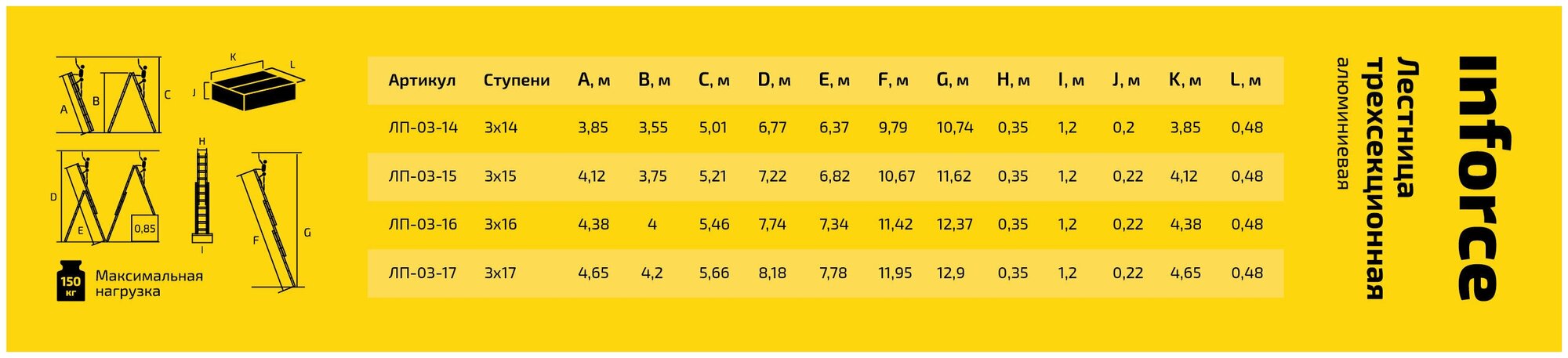Ниже Вы можете прочитать отзывы на Inforce Лестница трехсекционная 3x13 ЛП-03-13, ознакомится с подробными характеристиками, посмотреть интересные обзоры и фотографии на Inforce Лестница трехсекционная 3x13 ЛП-03-13.