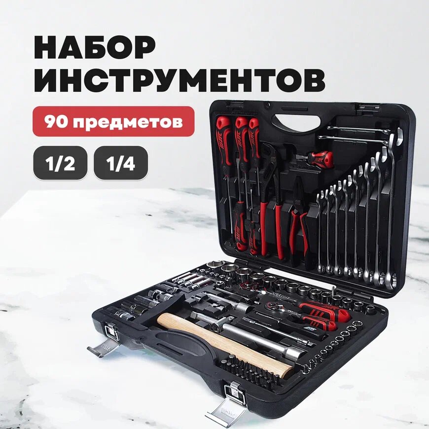 Набор инструмента 90пр 1/4"&1/2" 6гр кейс JTC