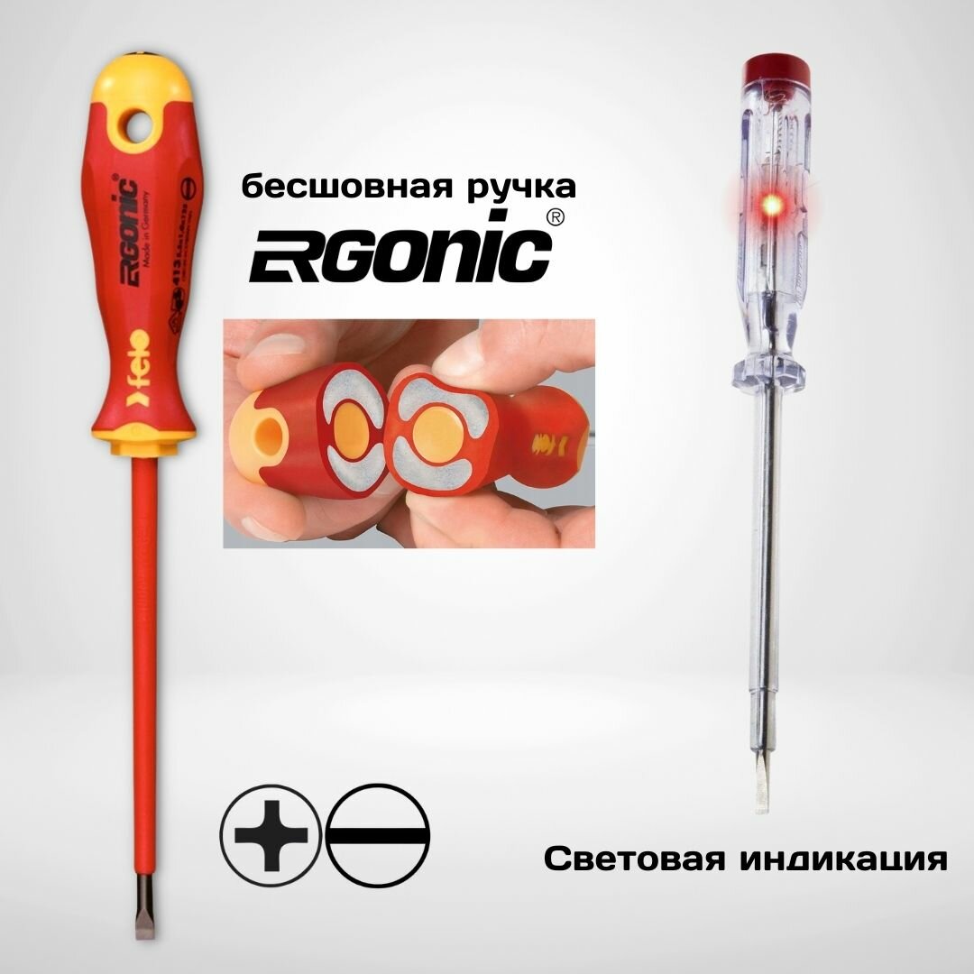 Набор Ergonic отвёртки 5 шт. до 1000В и указатель напряжения Felo 41396398