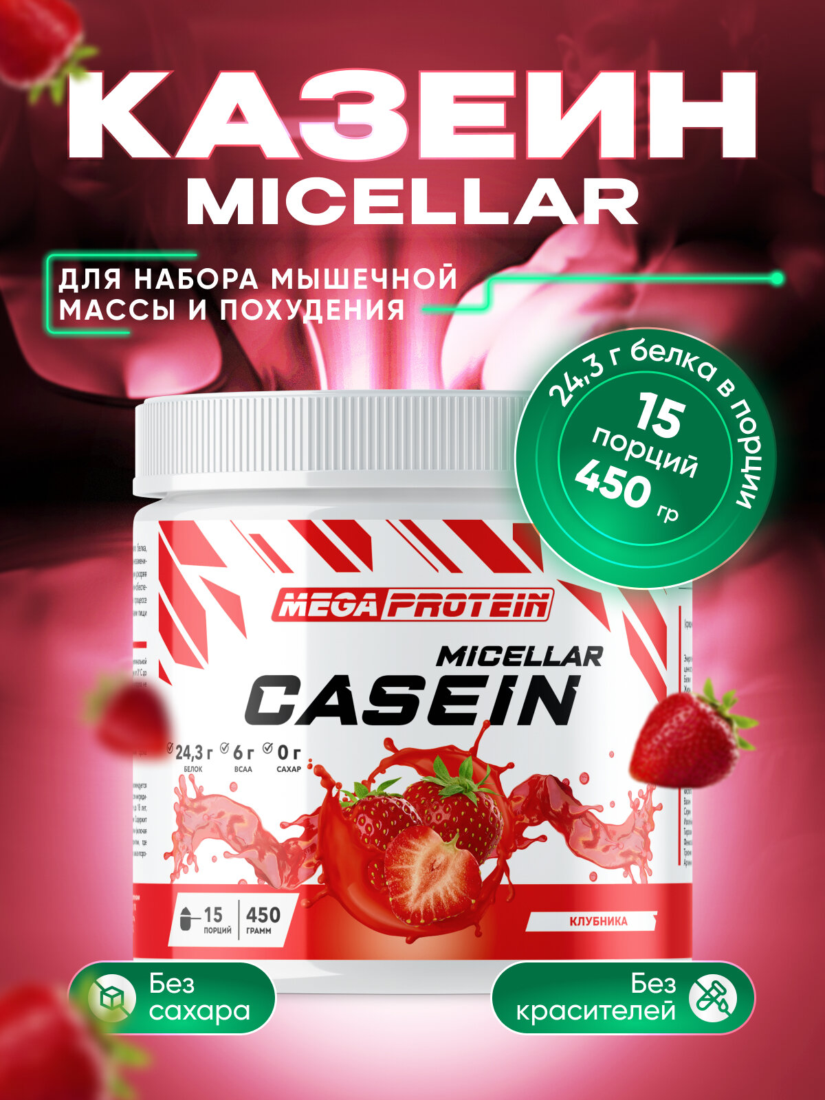 Мицеллярный казеин Megaprotein Протеин казеиновый "Casein micellar", Клубника, 450 г
