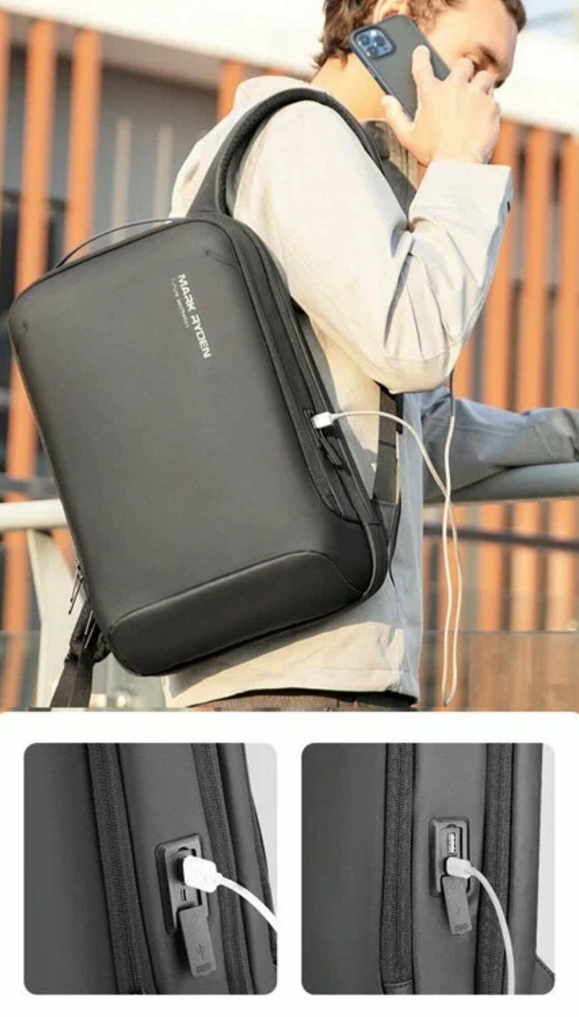 Рюкзак мужской Mark Ryden MR9008SJ 20л, с USB зарядкой, водонепроницаемый, черный