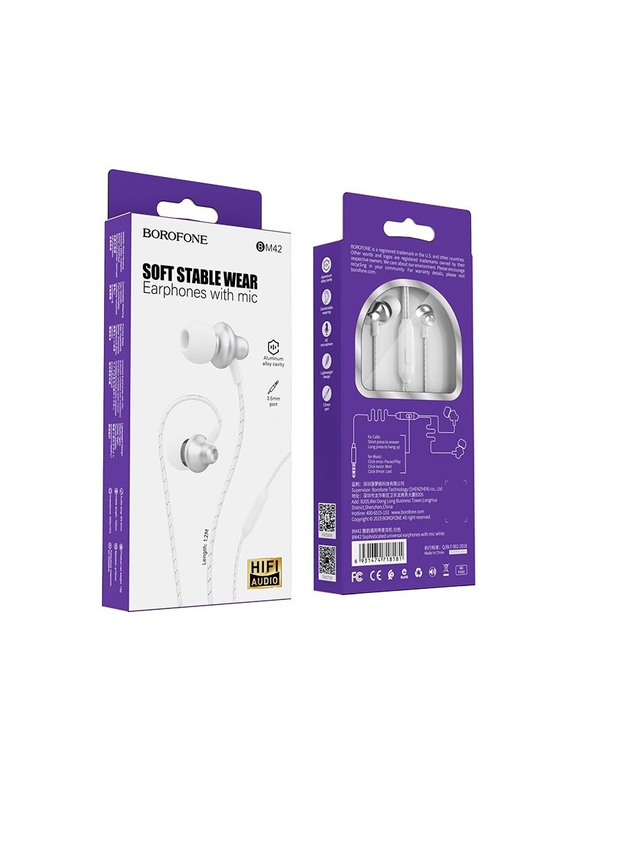 Купить Проводные наушники BOROFONE BM42 Sophisticated, Jack 3.5mm, 1.2 м, белый