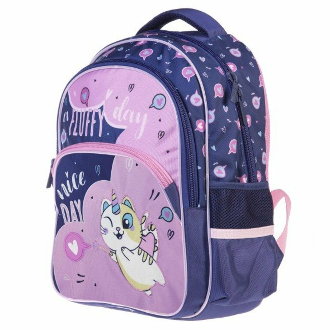 Рюкзак школьный 41 х 29 х 16 см, эргономичная спинка, Hatber Easy "Котомагия" розовый/синий NRk_76075