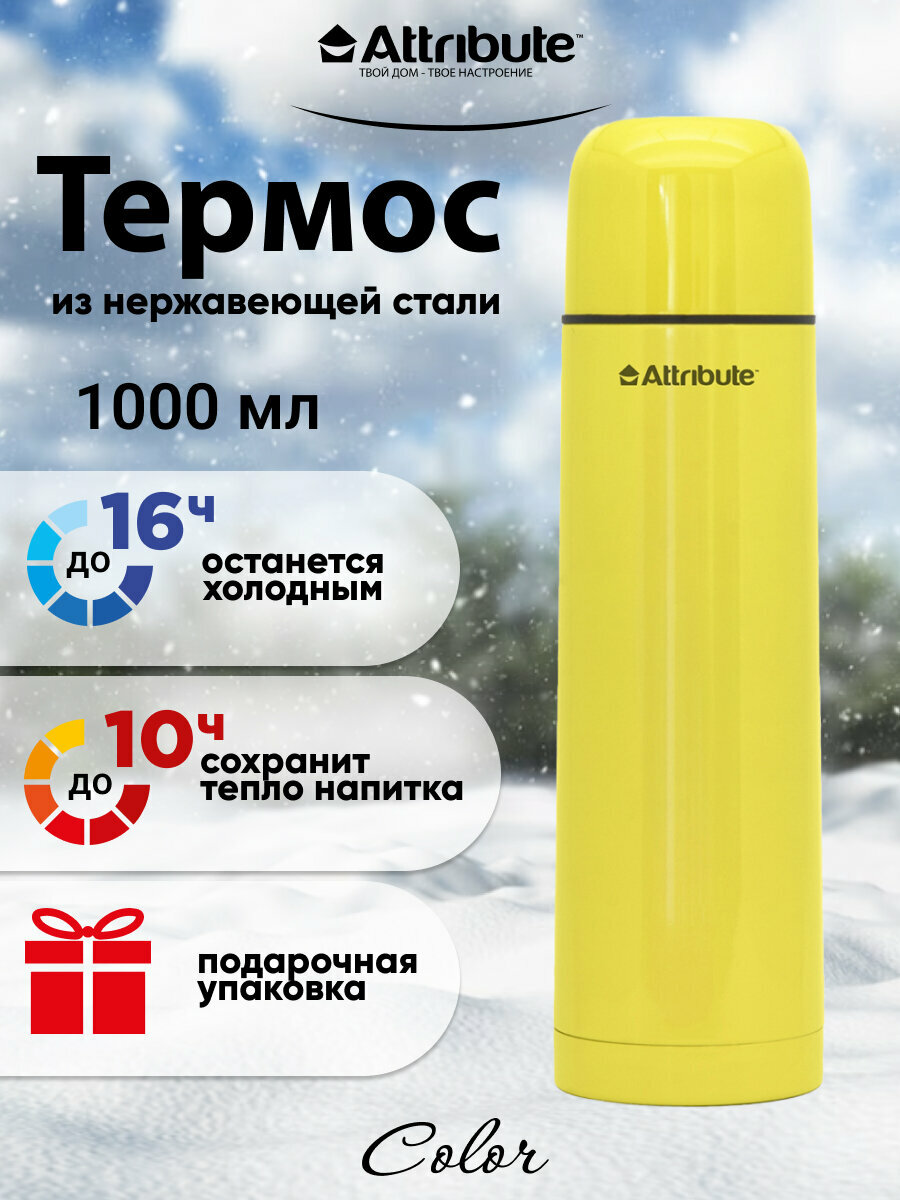 Купить Термос с узкой горловиной ATTRIBUTE VAC.FLAS COLOR 1л желтый