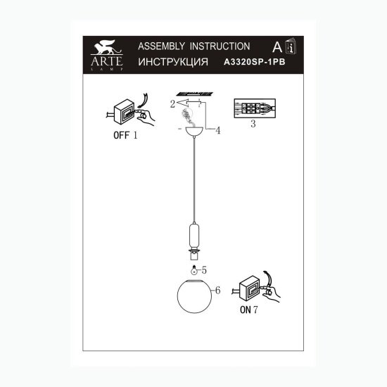 Подвесной светильник Arte Lamp A3325SP-1PB Bolla-Sola