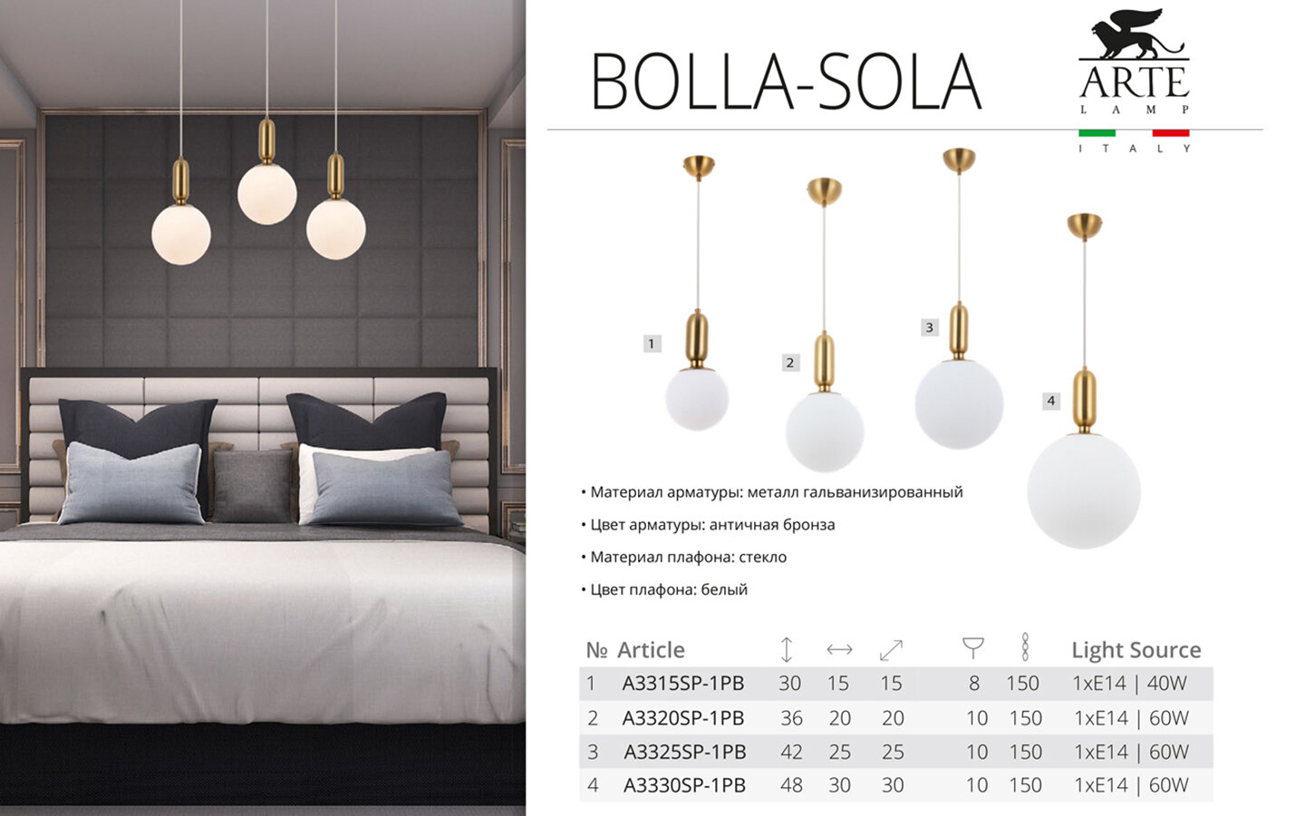 Подвесной светильник Arte Lamp A3315SP-1PB Bolla-Sola