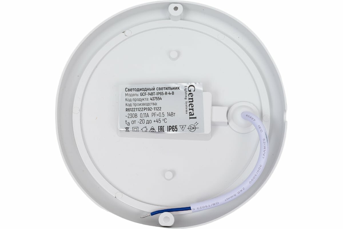 Светодиодный LED светильник ЖКХ СПБ 14Вт 4K круг. пластик белый IP65 General 437554 GCF-14BT-IP65-R-4-B