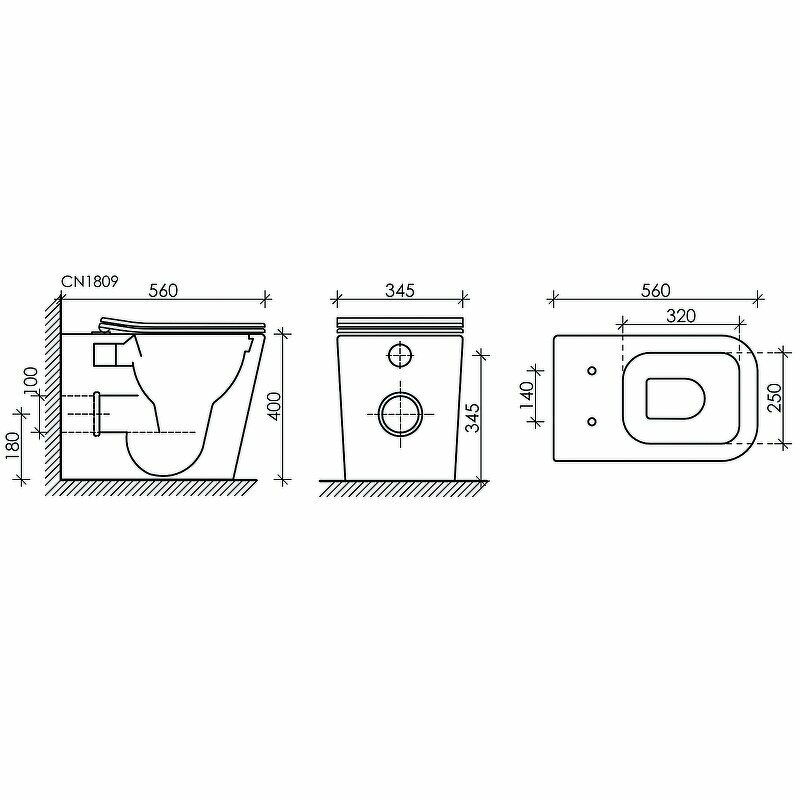 Напольный приставной унитаз Cubic Rimless CN1809