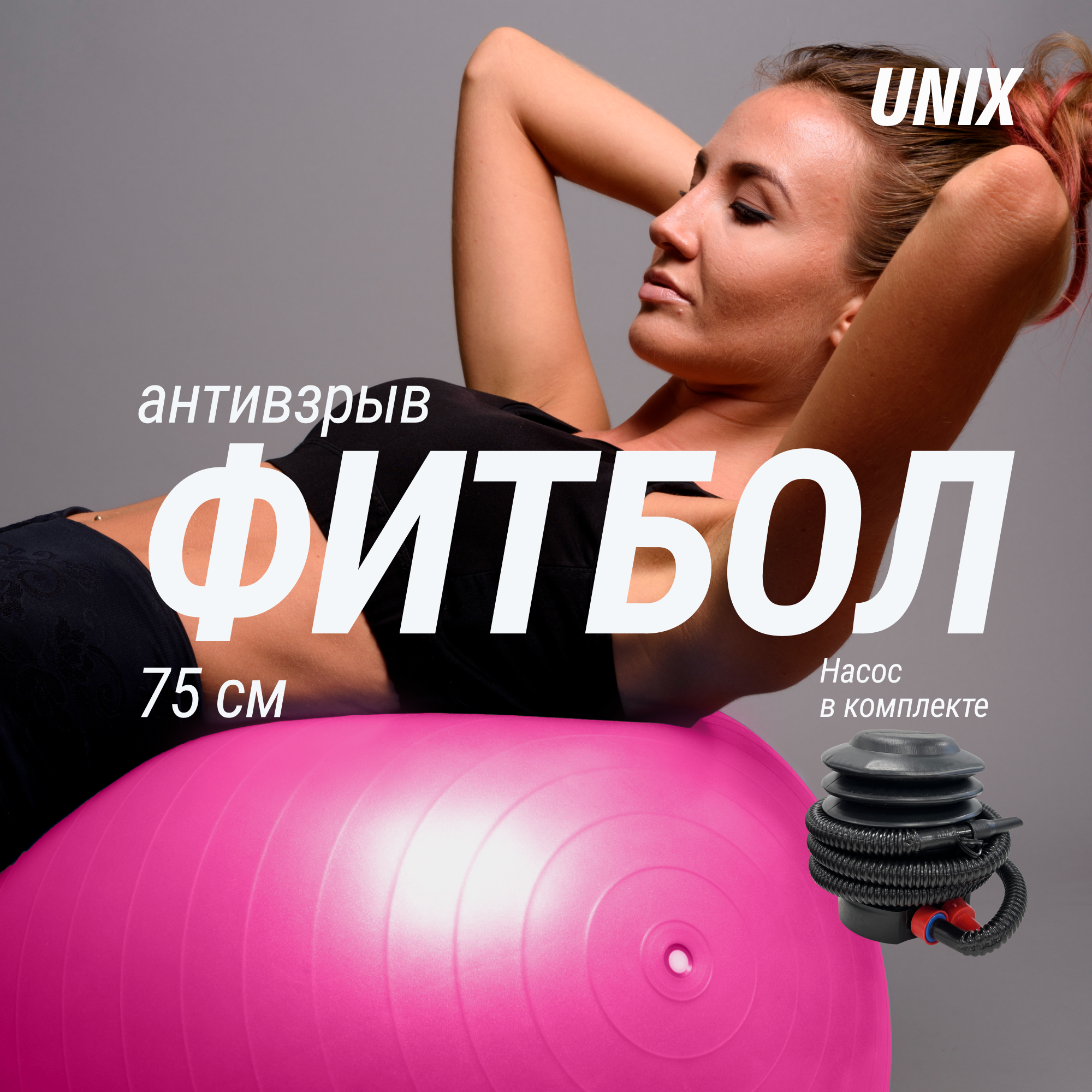 Купить Фитбол с насосом для детей и взрослых UNIX Fit, мяч гимнастический для беременных, антивзрыв 75 см, розовый UNIXFIT