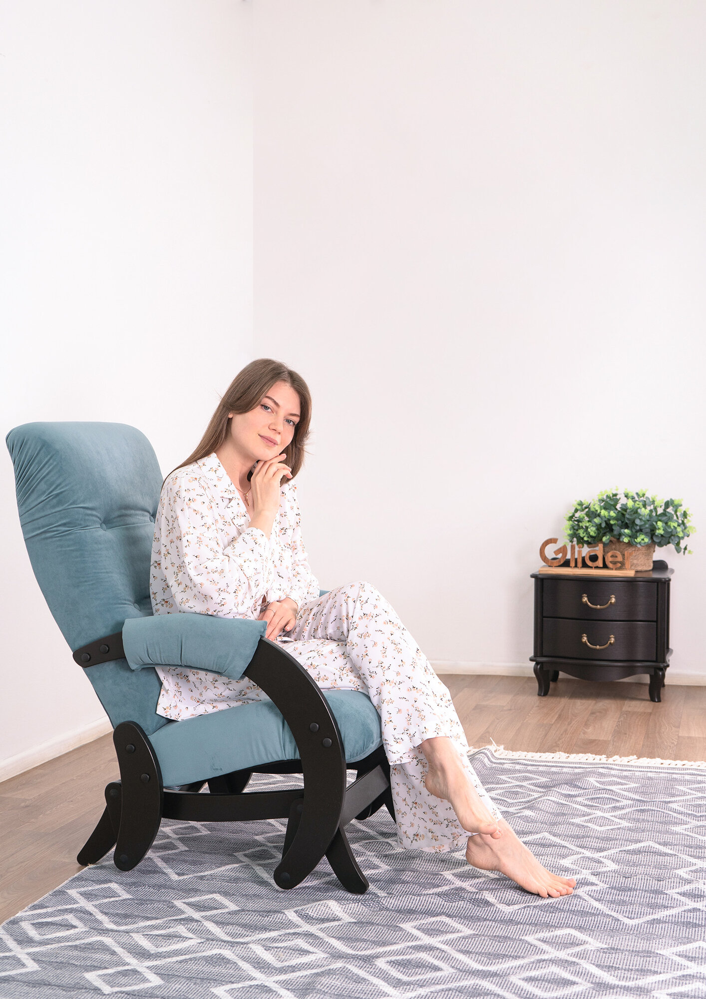 Комплект для дома и дачи Glider кресло-качалка 68 c пуфом в ткани Микровелюр, маятниковый механизм, цвет морской волны